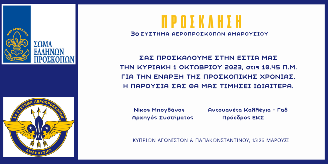 Η τελετή θα πραγματοποιηθεί στην Εστία του 3ου Συστήματος Αεροπροσκόπων Αμαρουσίου, επί των οδών Κυπρίων Αγωνιστών και Παπακωνσταντίνου.
