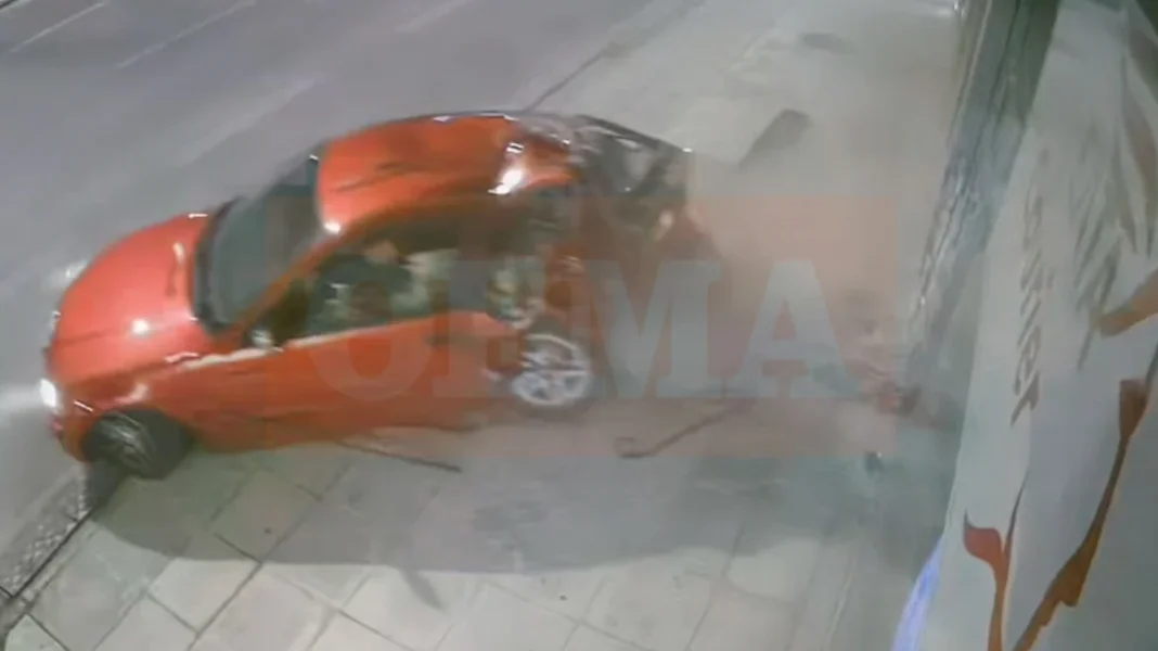 Στο βίντεο-ντοκουμέντο που παρουσιάζει το protothema.gr διακρίνεται η στιγμή που το κόκκινο ΙΧ έχει γυρίσει ανάποδα στο οδόστρωμα και πέφτει με μεγάλη ταχύτητα πάνω στο κατάστημα.