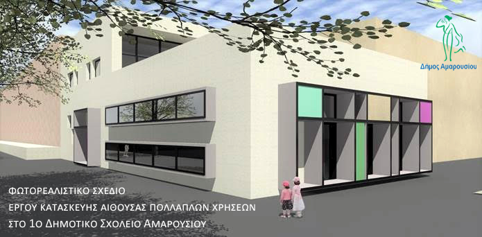Ο Δήμος Αμαρουσίου πρόκειται άμεσα να προβεί στη σύναψη εργολαβικής σύμβασης για την εκτέλεση του έργου «ΑΝΕΓΕΡΣΗ ΠΡΟΣΘΗΚΗΣ ΚΑΤ’ ΕΠΕΚΤΑΣΗ ΣΤΟ 1ο ΔΗΜΟΤΙΚΟ ΣΧΟΛΕΙΟ ΑΜΑΡΟΥΣΙΟΥ, ΓΙΑ ΤΗ ΔΗΜΙΟΥΡΓΙΑ ΑΙΘΟΥΣΑΣ ΠΟΛΛΑΠΛΩΝ ΧΡΗΣΕΩΝ ΚΑΙ ΛΟΙΠΩΝ ΥΠΟΣΤΗΡΙΚΤΙΚΩΝ ΧΩΡΩΝ» σε συνέχεια ολοκλήρωσης του σχετικού ανοιχτού διαγωνισμού και έγκρισης του Ελεγκτικού Συνεδρίου.