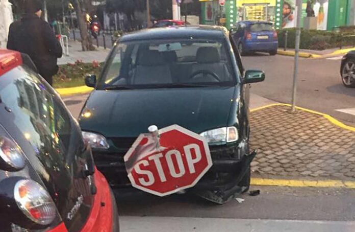 Αυτοκίνητο έπεσε σε πινακίδα STOP στο κέντρο του Αμαρουσίου